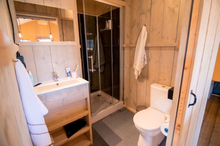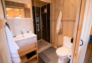 Dans la Lodge, vous disposez de 2 lits doubles (160×200), idéal si papi et mamie souhaitent également passer une nuit. Vous avez aussi votre propre salle de bain avec une grande douche à l’italienne, un chauffage infrarouge, une cuisine complète avec lave-vaisselle et une magnifique terrasse en bois spacieuse. Dans la Lodge, il y a de la place pour tout le monde, familles nombreuses ou petites familles. Profitez de la vie en plein air chez Glamping de Bosweide. La glamping devient ainsi vraiment agréable !