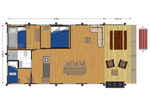 Envie de camper avec toute la famille ? C'est tout à fait possible dans cette spacieuse tente Lodge. Convient pour un maximum de 7 personnes.