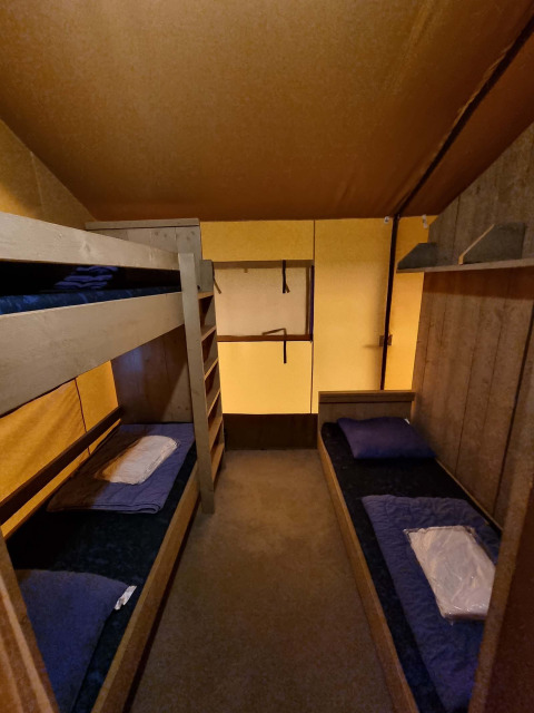 Ces tentes entièrement équipées offrent l'expérience ultime du camping sans les tracas. Elles sont situées sur le côté gauche du parc, à proximité de toutes les installations telles que la piscine, le restaurant et les aires de jeux.