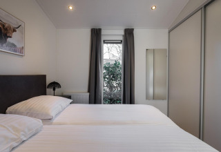 À l'intérieur, la villa dispose d'un espace de vie spacieux avec une grande table à manger et une cuisine entièrement équipée avec, entre autres, une plaque à induction, un four, un lave-vaisselle et une machine Nespresso. La villa comprend deux chambres, l'une avec un lit king size et l'autre avec deux lits simples, assurant un couchage confortable pour chacun. La salle de bain est équipée d'une grande douche à l'italienne, d'un lavabo et de toilettes, et les serviettes sont incluses. Grâce à la climatisation et au chauffage central, le séjour est agréable en toute saison.
