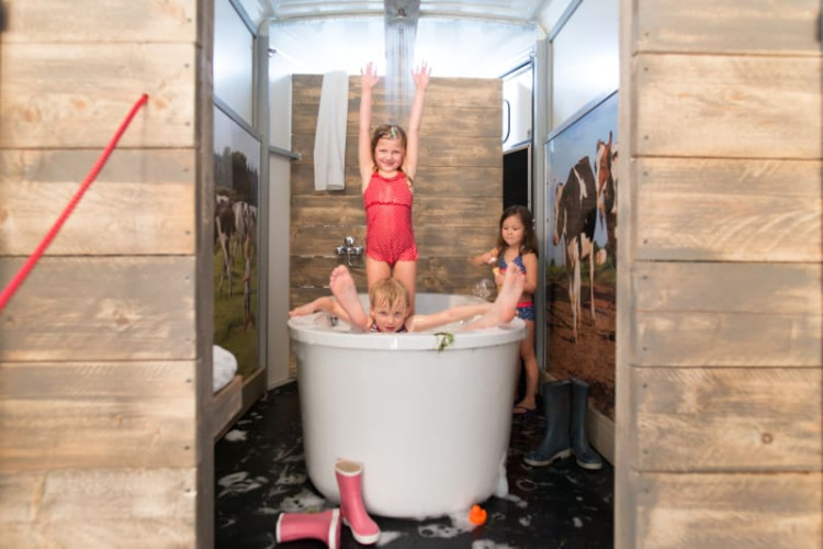 Et n’est-ce pas chouette de pouvoir dire que vous vous êtes baigné dans une remorque à chevaux ? La « Hooi Hooi Badtrailer » rend votre séjour vraiment unique et inoubliable. Prêt(e) pour une aventure particulière avec une touche de luxe ? La Ranchtent vous attend !