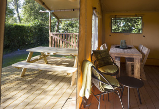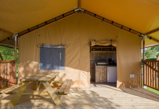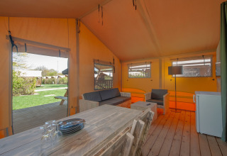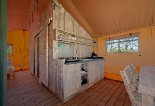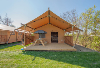 Si vous souhaitez un séjour détendu en groupe dans la nature, avec confort, activités et de charmantes villes à proximité, cette tente safari à Vakantiepark Hunzedal est la base idéale pour votre prochaine escapade glamping.