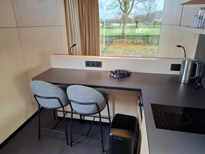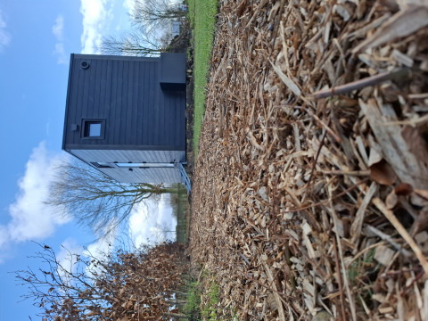 Découvrez une tiny house douillette pour deux personnes, avec une façade en miroir qui reflète la vue sur la nature. Profitez d'un séjour lumineux avec un coin salon, un coin repas et une cuisine entièrement équipée, comprenant une cafetière filtre, un micro-ondes et tout le nécessaire de cuisine. À l'étage, une mezzanine avec boxspring deux personnes vous attend, tandis que la salle de bain se trouve directement dans la maison. À l'extérieur, une terrasse privée vous invite à la tranquillité et à la liberté. Le wifi facilite la connexion, tandis qu'un environnement non-fumeur et sans animaux garantit une atmosphère agréable. Compact, pratique et confortable : parfait pour celles et ceux qui souhaitent se détendre et profiter du silence de la nature sans renoncer au confort.