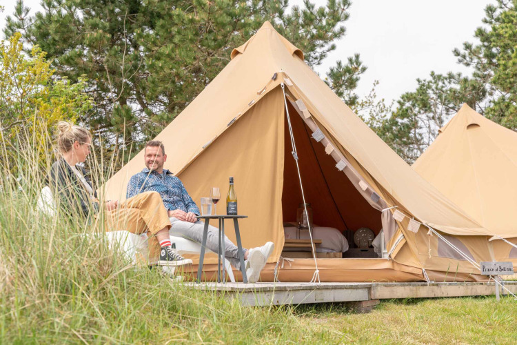 Les tentes Bell Escape Family conviennent pour 2 adultes et 2 enfants jusqu'à 18 ans ou 3 adultes. Les installations sanitaires sont accessibles à pied ; les installations sanitaires communes font partie du camping Duinoord.