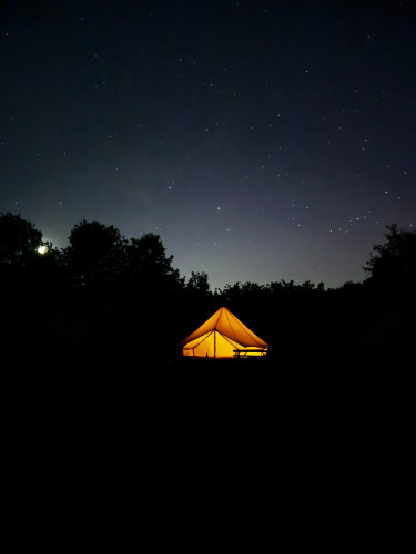 La tente dispose d'un lit fixe pour 2 personnes, mais peut être agrandie avec 2 matelas séparés, ce qui permet de réserver l'hébergement pour 2 adultes et 2 enfants.