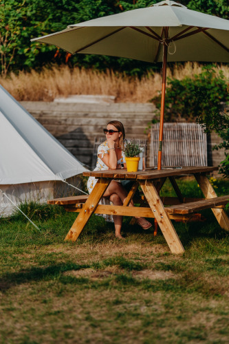 Prachtige locatie, we hadden de familie tent en met 4 personen hadden we ruimte genoeg. Goeie bedden, in het midden nog ruimte om rustig te zitten bij regen weer. De sanitaire blok is ook heel goed onderhouden.