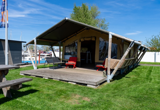 Vous cherchez une escapade en plein air tout en douceur avec une touche de confort ? Cette tente safari entièrement meublée, située dans la marina de Heeg, est votre point de départ idéal en Frise. Installée au bord de l’eau, elle est parfaite pour 2 à 4 personnes – que vous veniez en couple, en famille ou entre amis.