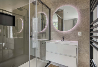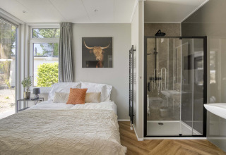 Magnifique chalet Pearl 4 au milieu de la Veluwe. Vous marchez directement dans la forêt. Vous vous promenez directement dans la forêt. Le chalet est luxueux et dispose de toutes les commodités. Nous avons eu la chance d'avoir un cottage au bord du parc, avec une belle vue sur la forêt. Nous avons visité le parc avec notre enfant de 8 ans, qui a adoré la Funzone ! Le restaurant du parc est très bon à un prix très abordable.