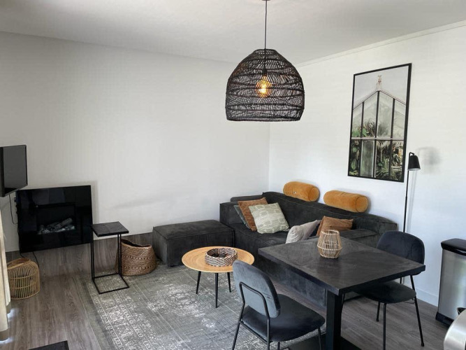 Dans l'élégant Modus Sauna 2, tu auras l'impression d'être dans une chambre d'hôtel de luxe. Cet appartement situé au rez-de-chaussée peut accueillir 2 personnes. Grâce à la disposition ouverte, il y a beaucoup d'espace et de lumière dans la maison. La salle de séjour dispose d'un coin salon avec télévision et le poêle crée une atmosphère chaleureuse. Dans la cuisine, tu trouveras entre autres un lave-vaisselle, un micro-ondes combiné, une plaque à induction et une machine à café Nespresso. L'appartement dispose d'un lit double. La salle de bain dispose d'une douche spacieuse et d'un joli sauna infrarouge. Des portes-fenêtres s'ouvrent sur la terrasse avec un ensemble de salon. Tu peux garer 1 voiture à la maison et il y a le wifi gratuit.