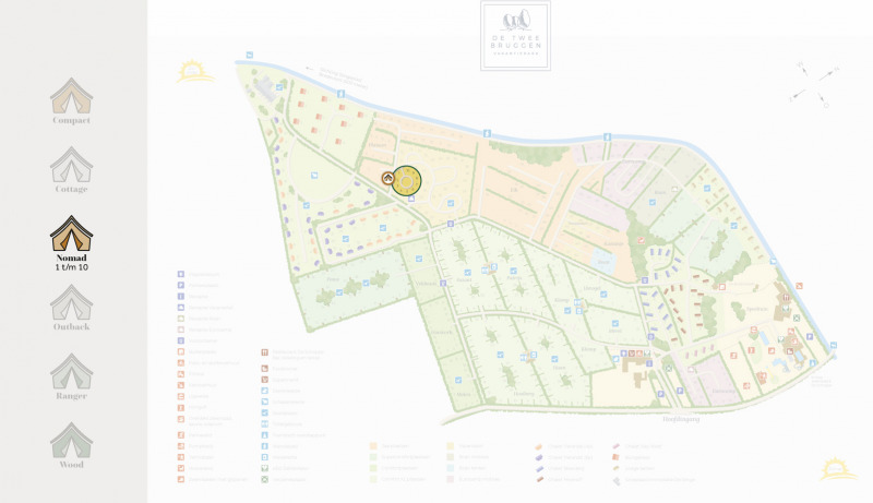 Découvre les tentes spacieuses et confortables de Villatent Nomad au parc de vacances De Twee Bruggen. Avec 35 m² d'espace intérieur, un toit surélevé et une terrasse généreuse, ces tentes offrent une sensation de luxe et d'espace. Les tentes peuvent accueillir 6 personnes et sont entièrement équipées, notamment de lits confortables et d'une salle de bain complète avec douche, toilettes et lavabo.