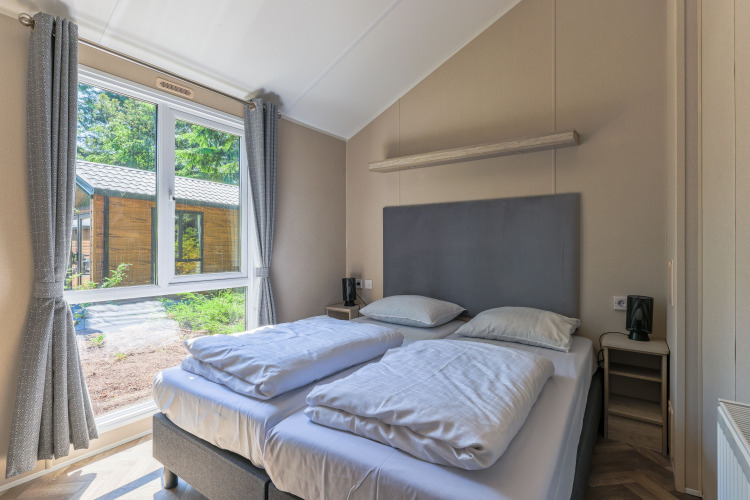 Forest Cottage dispose d'un salon spacieux avec de grandes portes-fenêtres donnant accès à une belle et spacieuse terrasse. La cuisine est spacieuse et équipée d'un grand réfrigérateur-congélateur, d'une bouilloire, d'une machine à café Senseo et d'un four à micro-ondes combiné. L'espace de vie dispose d'un coin salon confortable et d'un coin repas entièrement équipé. Il y a 2 chambres à coucher, toutes deux équipées d'armoires. Les plafonds sont équipés de spots encastrés.