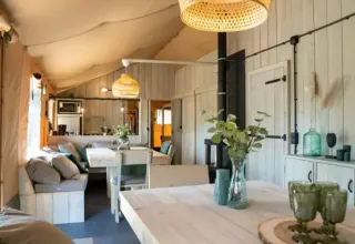Profite de vacances glamping relaxantes au Recreatiepark Den Blanken, au milieu de la magnifique région d'Achterhoek. Ce camping atmosphérique propose des tentes safari confortables pour un séjour sans souci. Avec des installations pour petits et grands, comme une piscine et des aires de jeux, c'est une destination idéale pour les familles. Découvre la nature paisible, les villages pittoresques et les paysages variés de la région. Ici, tu peux combiner le confort avec la convivialité et l'aventure !