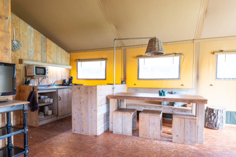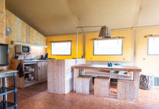 Fais l'expérience de la merveilleuse vie en plein air qu'offre le camping, mais profite aussi de lits de luxe confortables, de tes propres toilettes et d'un hébergement très douillet. Chez De Pampel, nous mettons tout en œuvre pour que ton séjour soit le plus agréable possible, et cela se reflète dans l'aménagement de ce Woodlodge. Le mobilier attrayant et complet répond à tous tes besoins et te permettra de te sentir comme chez toi ! Pour une bonne douche chaude, utilise le Saniplaza.