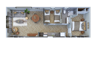 À l’extérieur, une terrasse privée vous attend pour profiter de l’air frais et du calme environnant. Sous l’élégante pergola, vous pouvez également rester confortablement dehors pendant les journées chaudes ou lors d’une pluie légère. Certains lodges de ce type disposent d’équipements supplémentaires pour encore plus de confort ; vous pouvez les sélectionner lors du processus de réservation. La Loevestein Comfort est ainsi un endroit idéal pour un séjour relaxant à deux.