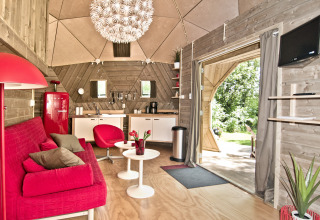 Unique, attrayant et confortable. Vous n'oublierez pas de sitôt votre séjour dans l'Igloo en bois ! Ce magnifique igloo en bois a une apparence chaleureuse et est décoré d'un intérieur tendance. Le grenier est également très romantique ! Passez de bons moments ensemble.