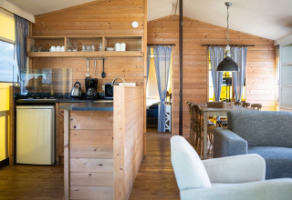 Le logement est entièrement équipé, notamment d'une cuisine avec réfrigérateur, cuisinière, micro-ondes et cafetière. Le coin salon dispose d'une table à manger, d'un coin salon et d'une télévision avec lecteur DVD. Pour les journées un peu plus fraîches, le chauffage électrique offre une solution.