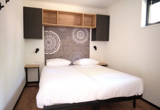 Le lodge dispose de deux chambres, chacune avec deux confortables lits simples boxspring que vous pouvez rapprocher ou séparer – idéal pour les couples, amis ou une petite famille. La salle de bains moderne dispose d’une douche à l’italienne effet pluie, et il y a des toilettes séparées pour plus de praticité.