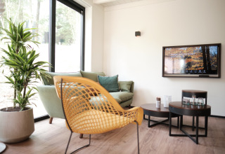 À l’intérieur, le salon lumineux est immédiatement accueillant. De grandes fenêtres inondent la pièce de lumière naturelle et offrent une vue sur la nature environnante. Installez-vous confortablement dans le salon doté d'une smart TV pour une soirée série, ou ouvrez une bouteille de vin sur la table à manger moderne tout en planifiant les aventures du lendemain. La cuisine ouverte est entièrement équipée avec tout ce qu’il vous faut pour cuisiner ensemble : une machine Nespresso pour le café du matin, un four micro-ondes combiné, et un lave-vaisselle pour que personne ne soit obligé de faire la vaisselle.