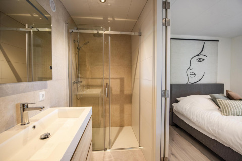 Avec une superficie de 68 m², cette maison de vacances moderne offre une impression d’espace surprenante. Le chaleureux séjour dispose d’un coin salon confortable, de la climatisation, d’une télévision à écran plat et du Wi-Fi gratuit. Dans la cuisine ouverte, vous préparez aisément un repas grâce au four micro-ondes combiné, à la plaque à induction, au lave-vaisselle, au réfrigérateur avec compartiment congélateur et au robinet d’eau bouillante. Les deux chambres sont aménagées avec goût et équipées d’une literie confortable (inclus). Les salles de bain disposent d'une douche à l’italienne moderne et sont attenantes à chaque chambre. À l’extérieur, profitez ensemble sur la grande terrasse couverte du calme et de la verdure environnants.