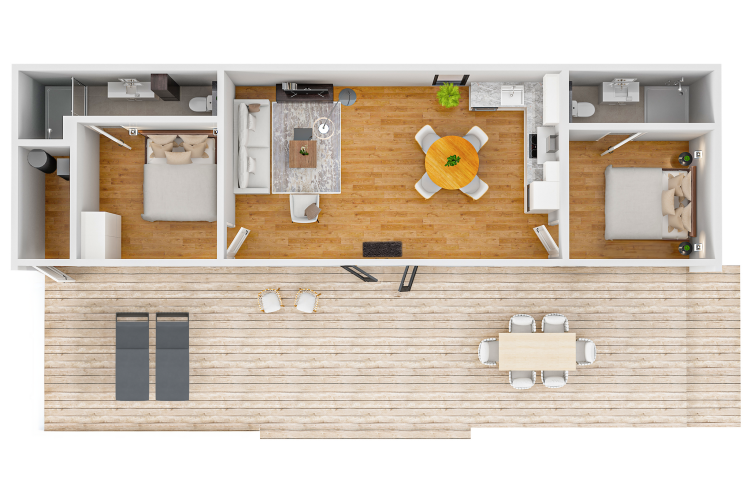 - 2 chambres et 2 salles de bains