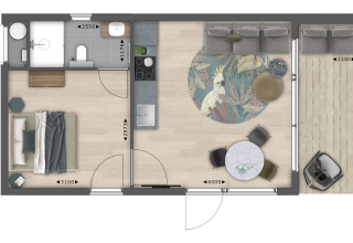Moderne huisjes in mooie omgeving.