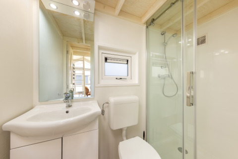 De retour dans votre tiny house, vous pouvez vous détendre sur votre terrasse privée couverte avec mobilier de jardin. Écoutez les sons de la nature, profitez de l’air frais et admirez le coucher de soleil sur le parc. Veuillez noter que les feux d’artifice sont autorisés dans le parc de vacances au Nouvel An ; vérifiez sur place où ils peuvent être tirés et contribuez à la propreté du parc en jetant les déchets de feux d’artifice.
