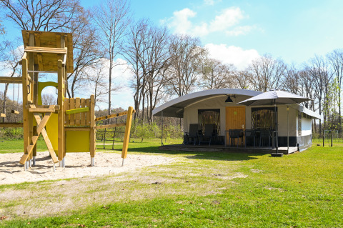 La Tentvilla offre pas moins de 3 chambres, une salle de bain avec sa propre douche, son lavabo et ses toilettes, un coin salon confortable et une cuisine entièrement équipée. Il y a également une terrasse couverte spacieuse, ce qui te permet de profiter de tes vacances bien méritées à l'extérieur le soir aussi !