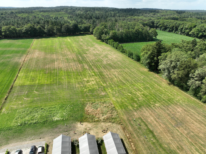 Kleine, rustige camping met uitzicht over de grasvelden. Mogelijkheden voor aanmaken van (kamp)vuurtje, huren van fietsen en hottubs. Tent was luxe en compleet ingericht. Goede douche, goede bedden en warmtelamp waren de pluspunten. In de omgeving veel te doen.
