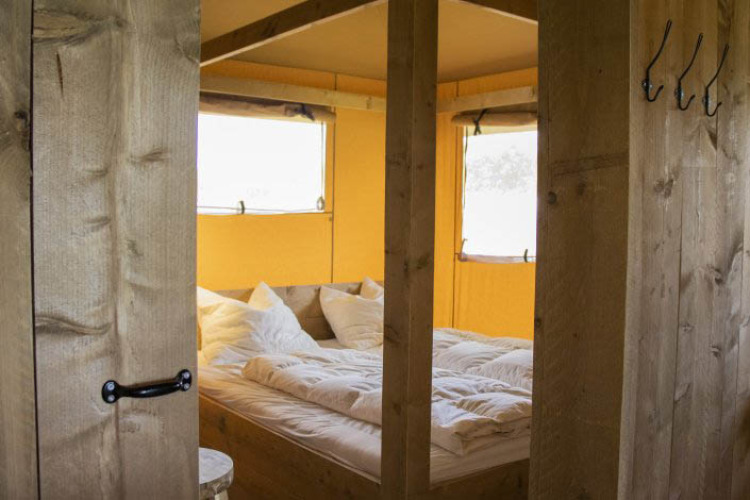 La tente safari avec sanitaires est une tente safari de luxe pouvant accueillir jusqu'à 6 personnes, un hébergement idéal pour des vacances en famille ou en groupe ! Avec une surface de 40m2. Mange ensemble à la grande table avec des chaises, jette l'avant de la tente complètement ouvert et profite de la vue et de l'air frais. Prépare les repas dans la cuisine entièrement équipée et détends-toi à la fin de la journée sur l'un des luxueux fauteuils ou dans l'une des 2 chambres. Dans une chambre, tu trouveras un grand lit double, et dans l'autre, 2 lits superposés. D'une longueur de 2 mètres, les lits conviennent aussi bien aux enfants qu'aux adultes. Pour rendre tes vacances glamping encore plus luxueuses, la tente safari est équipée d'une salle de bain complète avec une douche, des toilettes et un lavabo.