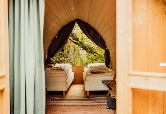 Ces Pods sont des endroits merveilleux pour se retirer et se détendre vraiment ensemble. Équipés d'un bon lit double, de literie, d'un coin salon et d'un foyer, tu n'as plus à te soucier de rien.