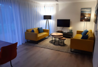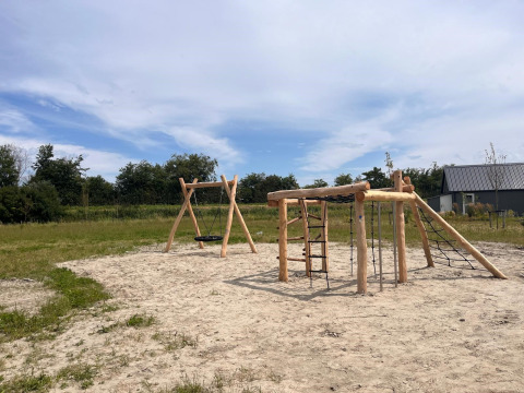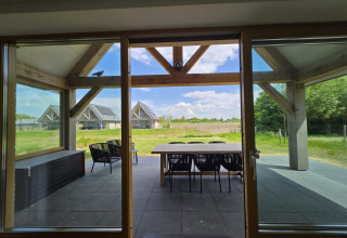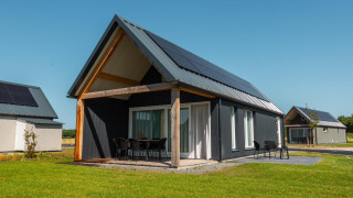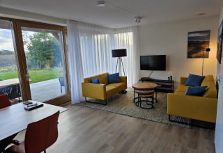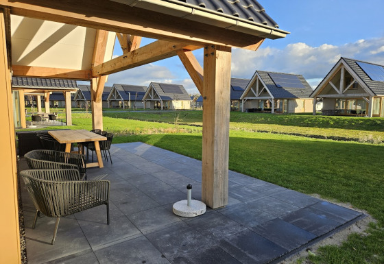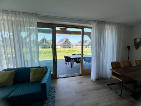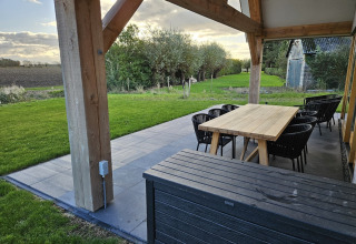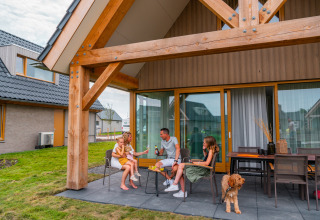 À l'extérieur, vous profitez de votre propre grande terrasse avec un ensemble de jardin confortable et un parasol. Il y a un coffre avec des coussins d'extérieur et des transats. Vous pouvez garer 2 voitures à l'hébergement de vacances et utiliser le Wi-Fi. Et chose unique en Zélande : chaque maison du parc de vacances dispose de sa propre borne de recharge pour voitures électriques !