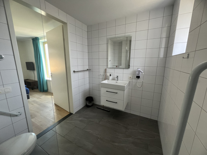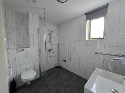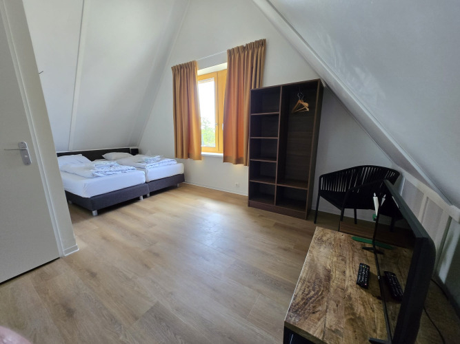 Il y a au total trois chambres, chacune avec deux lits simples et une salle de bain privée. Chaque chambre dispose également d'une télévision. Au rez-de-chaussée se trouve une chambre avec salle de bain. La salle de bain spacieuse dispose d'une douche à l'italienne, d'un lavabo, d'un sèche-cheveux et de toilettes. Le rez-de-chaussée est également bien adapté aux personnes à mobilité réduite.