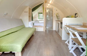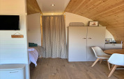 Oubliez la tente qui résiste à peine au vent (et encore moins à la pluie). Un pod, c’est comme une cabane qui aurait fait l’école hôtelière, avant de partir vivre en forêt. Idéal pour deux (ou parfois plus, selon la taille), ce petit abri en bois est souvent équipé de vrais lits, de l’électricité, du chauffage et parfois même d’une petite kitchenette. Se lever avec les oiseaux et non avec le froid qui vous réveille à 5h du matin, c’est quand même mieux, non ?