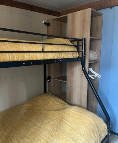 Avec deux chambres—l'une avec un lit double confortable et l'autre avec un lit superposé composé de deux lits simples et un lit au-dessus—il offre flexibilité et confort aux familles ou petits groupes. La cuisine bien équipée comprend des équipements modernes tels qu'une plaque à induction, un grand réfrigérateur avec congélateur et un micro-ondes, rendant la préparation des repas facile. Rafraîchissez-vous après une journée d’aventure dans la salle de bain équipée d’une douche vivifiante. Découvrez le confort et la commodité du FAMILY PREMIUM BUNGALOW et assurez-vous un séjour inoubliable au cœur de la beauté naturelle du Camping São Miguel.