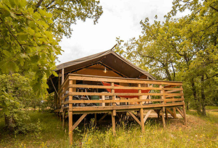 Tentes safari - Des tentes spacieuses avec des sols en bois, de vrais lits, souvent une cuisine et parfois même une salle de bain privée. L'ambiance camping, mais avec le confort.