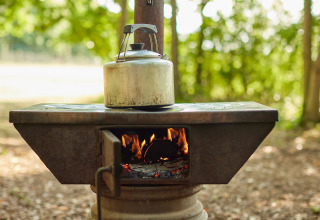 - Emplacement du feu de camp à côté de la tente