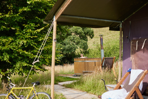 Les installations et les activités à Chalet de tente avec douche chaude privée à côté de la tente avec bain à remous