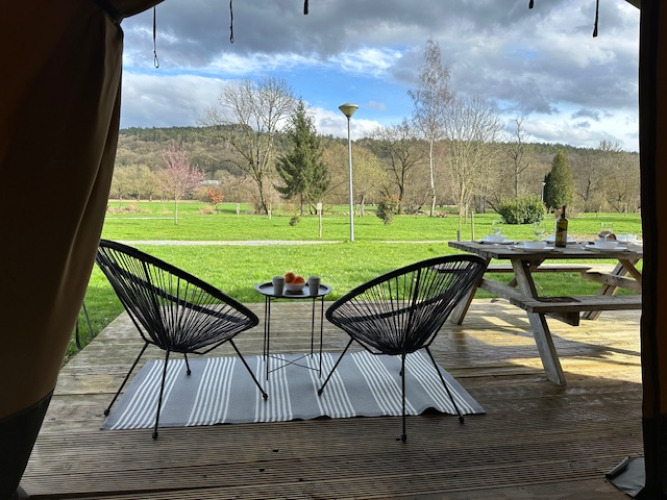 Mijn vriend had deze accommodatie geregeld voor mijn verjaardag voor 1 nacht omdat we de dag erna een activiteit zouden doen in de buurt. De locatie is goed, mooi langs een rivier, loopafstand van durbuy, nette plek. We verbleven in een bell tent. Bij de check in werd gevraagd of we beddengoed bij hadden. Nee? Mijn vriend had hierover niets gelezen bij het boeken. Omdat we een leuke dag wouden en we niet zeker weten of we de kleine lettertjes op booking.com. gemist hadden hebben we maar beddengoed voor 20euro gehuurd. Achteraf gezien spijt van. De tent is netjes op wat spik na. Voor de tent is een terrasje met twee stoelen. Helaas helemaal bedekt met bladeren was leuk geweest en had ons een welkom gevoel gegeven als ze deze even hadden weggeveegd. Buiten de tent is geen lampje dus als het vroeg donker is zit je buiten de tent in het donker. Tip hang paar lampjes op die je aan kunt zetten. We hebben het beddenlinnen moeten huren voor 20 euro maar kussen en dekbed lag wel in de tent. Echter ook met een beetje zwarte spik op. Waarschijnlijk door de vochtigheid in de tent er is namelijk geen verwarming . Op de fotos op booking.com zie je een opgemaakt bed met klein kacheltje. Er staat nergens aangegeven dat je voor de kachel en beddengoed extra moet betalen. Op de wc's is geen toiletpapier aanwezig en krijg je ook niet aangeboden in de tent waar je bijna 80 euro per nacht voor betaalt. Dit was voor ons een eerste keer op een glamping dus we wisten niet wat we konden verwachten. Het zou netjes zijn als er op booking.com vermeld word dat er voor beddengoed, gebruik van de douches en een kachel in de tent extra betaalt voor moet worden en de kosten hiervan. Nu worden ze wel gepresenteerd op de fotos alsof ze erbij horen. Als dit duidelijk was vermeld was ik met een ander gevoel weggegaan en had ik gewoon mijn eigendekbed zonder spik en kacheltje meegenomen. Nu voel ik mij een beetje opgelicht hierdoor. Je boekt een accommodatie op booking.com met fotos van een tent met beddengoed en kachel maar krijg niet wat wordt aangeboden!! Zet dan gewoon fotos erop van wat mensen daadwerkelijk krijgen bij het boekrn of vermeld een disclaimer dat beddengoed en kachel gehuuurd moeten worden. Nu voelt het als een trucje om extra inkomsten te genereren.