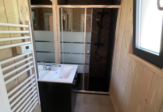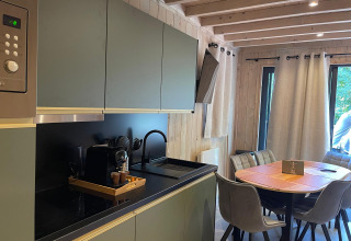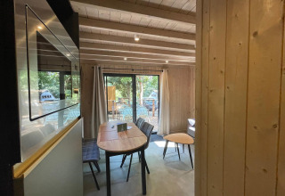 Goditi spazio, tranquillità e comfort in questa spaziosa Eco Lodge per sei persone. Le tre camere da letto, il bagno e il WC separato offrono privacy e comodità durante ogni pernottamento. Prepara gustose pietanze nella cucina completamente attrezzata con lavastoviglie, piano cottura in ceramica e macchina da caffè. Rilassati nell'accogliente soggiorno o sulla terrazza con zona lounge. Le grandi finestre lasciano entrare la luce naturale e offrono una vista sulla natura. Il riscaldamento centrale, la smart TV e il Wi-Fi completano il soggiorno.