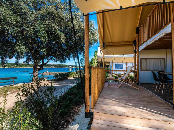 Deluxe Camping Villa First Row è un alloggio di 57 m² con una terrazza coperta aggiuntiva di 17 m², progettato per un massimo di 6 ospiti, a pochi metri dal mare. Dispone di aria condizionata e Wi-Fi gratuito. L’area soggiorno include un divano letto (80x185 cm) e un angolo cottura completamente attrezzato con un grande frigorifero con congelatore, lavastoviglie, piano cottura a induzione, microonde, bollitore d’acqua e una macchina per espresso ILLY.