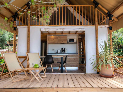 La Glamping Safari Loft Tent è un alloggio di 30 m² progettato per ospitare fino a 4 persone (2+2). Dispone di aria condizionata, Wi-Fi e parcheggio presso l'alloggio, con animali ammessi con un supplemento.