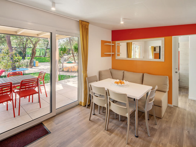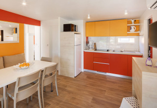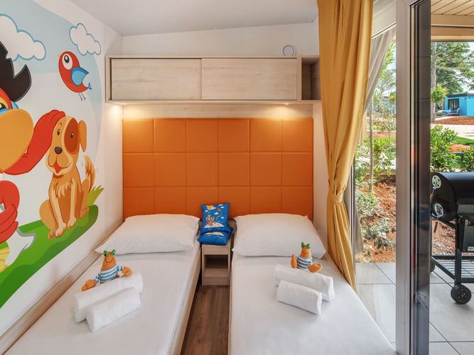 La Maro Home per 6+2 offre 38 m² di spazio abitativo confortevole e si trova nell’accogliente e tematico Maro Village, ideale per le famiglie. Questo villaggio sicuro e completamente recintato crea un ambiente senza auto dove i bambini possono giocare liberamente, proprio accanto a un divertente parco acquatico con due piscine, scivoli e attrazioni d’acqua.