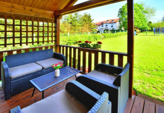All'esterno, avrai a disposizione la tua terrazza coperta privata con mobili da giardino confortevoli e un barbecue, perfetta per lunghe serate estive. L'ampio giardino verde è sicuro e recintato, ottimo se viaggi con bambini o animali domestici. I più piccoli saranno felici: c'è un parco giochi attraente con trampolino, scivolo, altalene e sabbiera. Servizi per bambini come culla e seggiolone sono disponibili su richiesta e già inclusi nel prezzo.