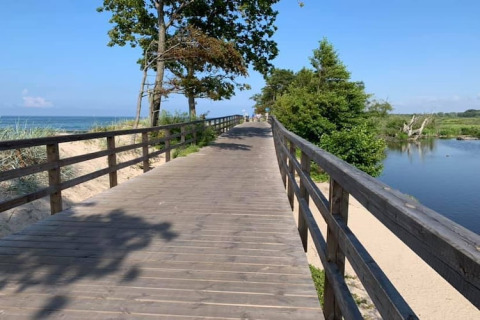 Ustronie Morskie si trova appena 10 km a est di Kołobrzeg, sulla pittoresca costa della Pomerania Occidentale. Una spiaggia sabbiosa e pulita, un affascinante molo pedonale, aria fresca di mare e una scenografica linea di scogliere ne fanno una meta balneare molto amata. Oltre a prendere il sole e nuotare, puoi fare trekking, andare in bicicletta, a cavallo o persino fare un giro turistico in aereo lungo la costa. È una base ideale per una vacanza romantica e senza pensieri sul Mar Baltico.