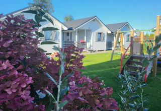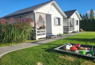 Ogni comoda casa a un piano dispone di una terrazza coperta e mobili da giardino, così puoi gustare la colazione all'aperto o rilassarti con una bevanda dopo una giornata in spiaggia. All'interno troverai un luminoso soggiorno con divano letto matrimoniale e TV, due camere da letto separate e un bagno con doccia. La cucina open space è collegata al soggiorno – l’ideale per cucinare insieme e tenere d’occhio i bambini. Nei giorni più freschi, il riscaldamento elettrico mantiene tutto accogliente e caldo.