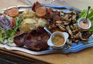 Questa lodgetent offre un'esperienza di glamping confortevole, con la sensazione del campeggio e la comodità di un alloggio completamente arredato. All'interno troverai una spaziosa zona giorno con tavolo da pranzo e panche, e una cucina fissa con un inventario completo. La cucina è dotata di un fornello a gas a 4 fuochi, un grande frigorifero e una macchina Nespresso. Nelle camere da letto dormirai su comodi materassi boxspring e la biancheria da letto è inclusa. La tenda dispone inoltre di un bagno privato con doccia, WC e lavandino, così puoi godere di un comfort extra durante il soggiorno.