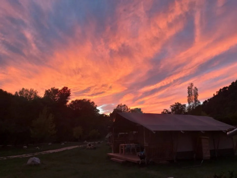 Camping Le Moulin de Cost è un piccolo campeggio immerso nella natura nella Drôme Provençale, situato su un limpido ruscello e con una vista sulle montagne. Qui tutto ruota intorno alla tranquillità, allo spazio e alla vita all'aria aperta, con una piscina, un accogliente ristorante e tanto spazio per far giocare i bambini. Soggiorna in una tenda lodge dal fascino unico con bagno privato e goditi la semplicità e la convivialità della vita da campeggio. I dintorni offrono tante possibilità per camminare, andare in bicicletta e scoprire il fascino del sud della Francia, con il Mont Ventoux a breve distanza.