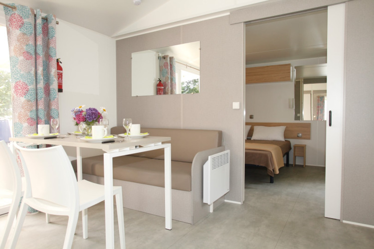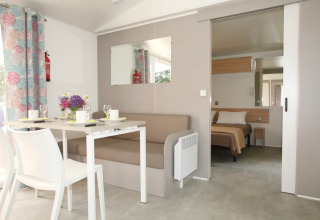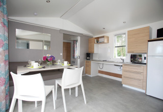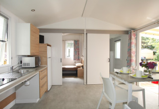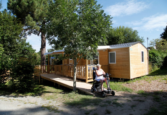 Vivi una vacanza rilassante e senza preoccupazioni nelle case mobili PMR presso Flower Camping Le Kerarno, appositamente progettate per ospiti con mobilità ridotta. Questa confortevole casa mobile di 29 m² si trova sulla splendida Baia di Quiberon ed è dotata di una rampa d’accesso, una disposizione intelligente e un bagno adattato con toilette integrato.