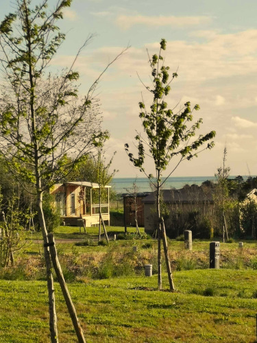 Abbiamo trascorso una notte in un ecolodge in questo campeggio tranquillo e nuovissimo, situato a 5 minuti a piedi dal mare, con buone strutture (parchi giochi, piscina, ecc.) e personale molto gentile! L'unico inconveniente è che di notte faceva un po' freddo nel nostro alloggio. Forse sarebbe una buona idea segnalarlo sul sito web.