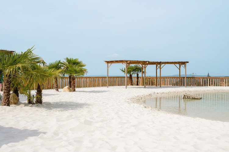 Sì, il campeggio dispone di tre piscine. C'è una piscina all'aperto, una piscina parzialmente coperta e una piscina per bambini. Puoi anche goderti la laguna naturale con spiaggia sabbiosa.
